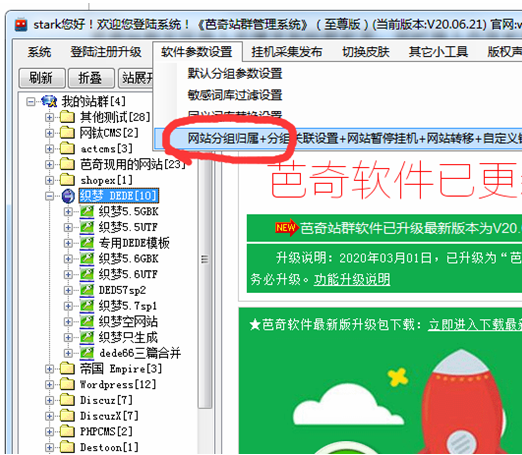 芭奇站群软件实现这个功能,因为是要同时插入同一个词,所以要利用自定义链接库的功能实现